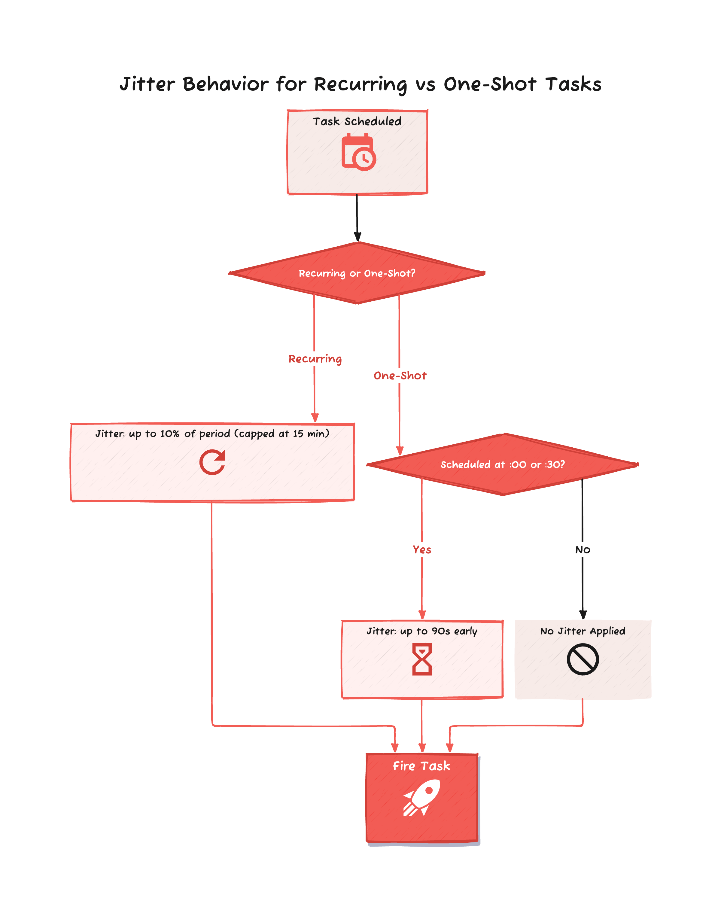 Also, to avoid every session hitting the Anthropic API at the same time, the scheduler adds a small jitter to fire times, so tasks don't execute exactly at the scheduled time.